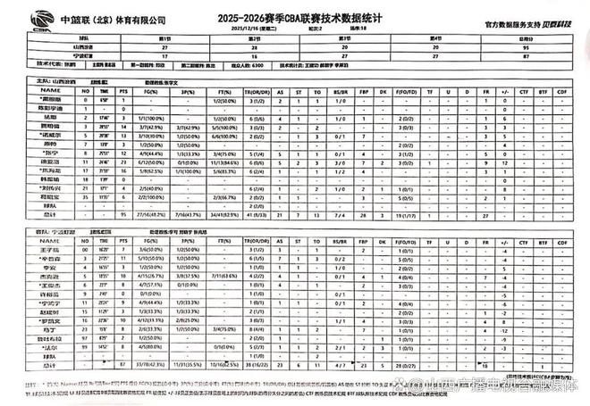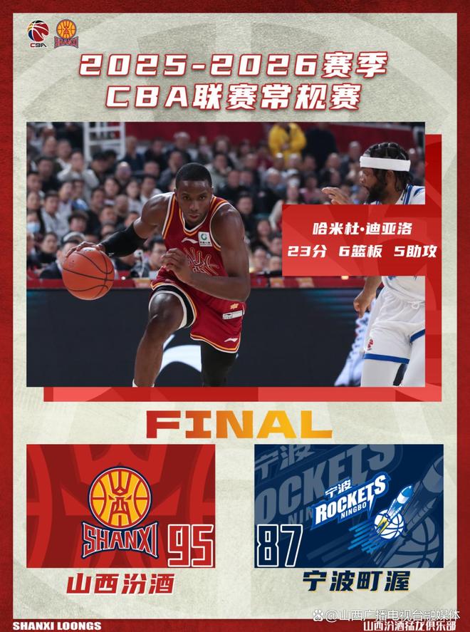 北京时间2025年12月16日19:35,2025-2026赛季CBA联赛第二轮继续进行,山西汾酒迎来主场首战,对阵宁波町渥。两队历史上共交手8次,山西汾酒7胜1负,上赛季常规赛两队交手2次,山西汾酒2胜0负。本场比赛,山西队上半场发挥出色,攻防两端都具备较高积极性,建立起大比分领先优势;但下半场全队专注度有所下降,导致比分最后一度胶着,全队仍需总结调整。最终全场比赛结束,山西汾酒95:87战胜宁波町渥,迎来主场开门红!