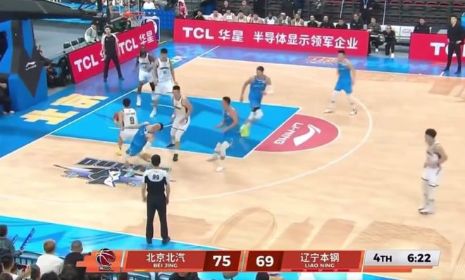 第四节打到还剩下6分钟22秒时,姜宇星在抢篮板时打到了陈盈骏的面部,陈盈骏马上朝着裁判投诉,姜宇星被吹了犯规。